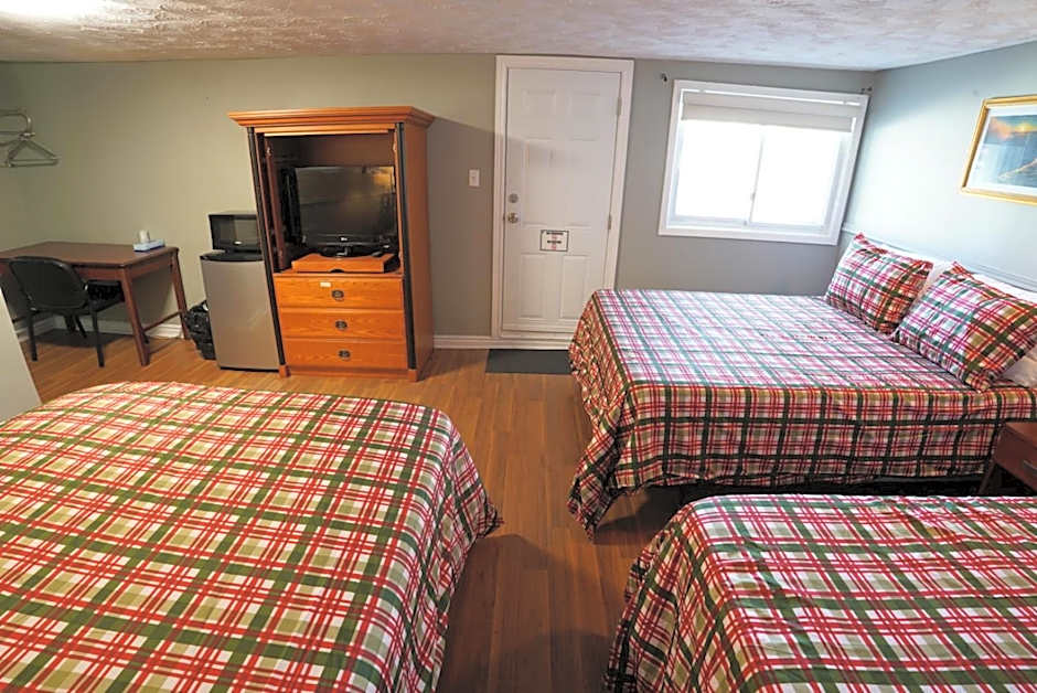 This large family room includes a microwave, fridge, air conditioning and cable TV.