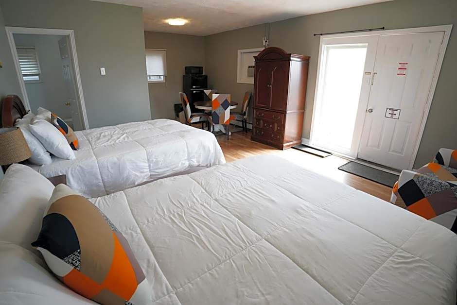 This suites consists of 2 bedrooms. One of the bedrooms includes a full kitchen for the preparation of meals. The bedrooms are connected by a small hallway and there are also 2 bathrooms.